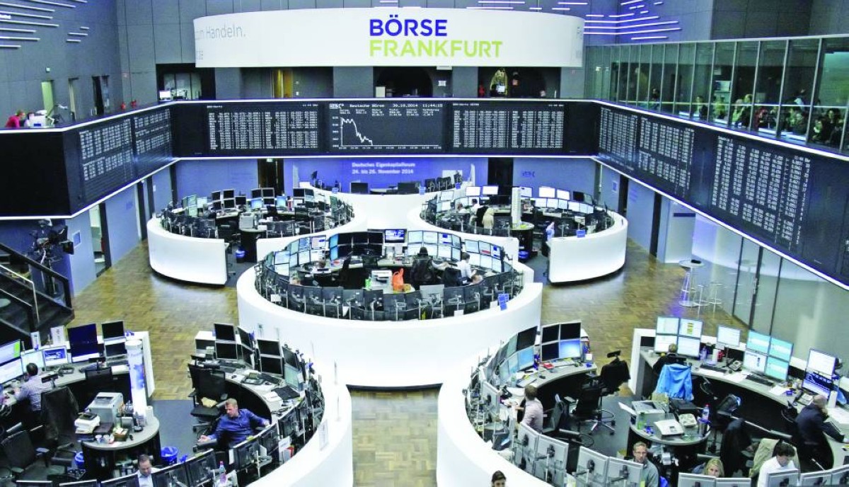 متعاملون يتابعون شاشات الأسعار في بورصة فرانكفورت