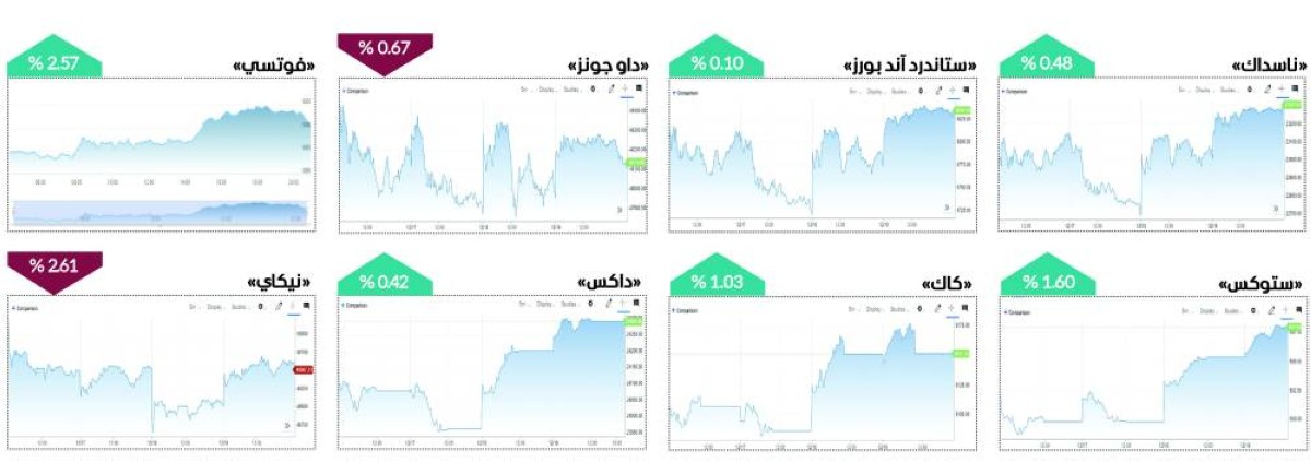 وسجل مؤشر «ستوكس 600» الأوروبي أداءً إيجابياً، ليغلق عند مستوى 587.50 نقطة، مقارنة بإغلاق الأسبوع الماضي عند 578.24 نقطة، محققاً مكاسب بلغت 9.26 نقاط، أو ما يعادل 1.60 %.