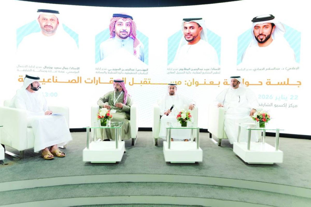 جاء ذلك خلال جلسة حوارية بعنوان «مستقبل العقارات الصناعية»، نظمتها الدائرة ضمن فعاليات معرض الشارقة العقاري (إيكرس 2026)، بحضور نخبة من المسؤولين والخبراء، وبإدارة د. عبدالسلام الحمادي.