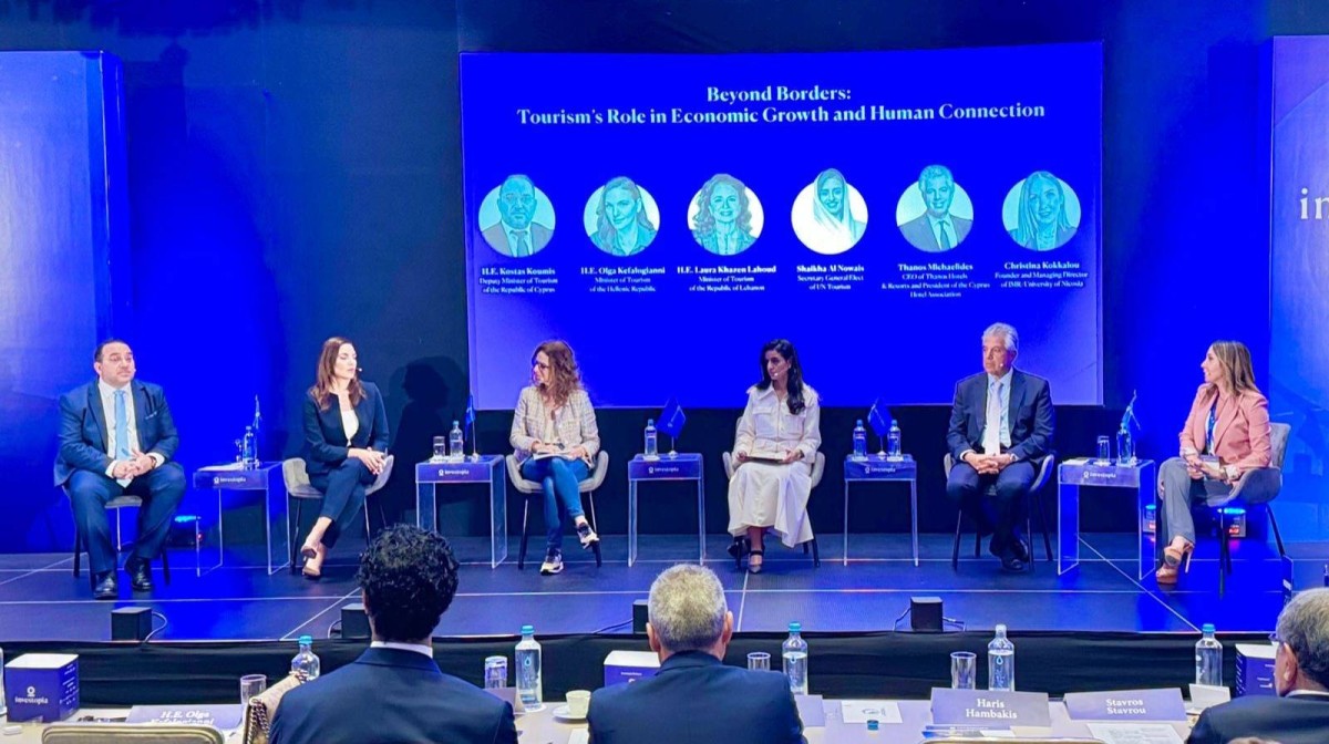 شاركت شيخة النويس، الأمين العام المنتخب لمنظمة الأمم المتحدة للسياحة، للفترة من عام 2026 حتى عام 2029، في جلسة حوارية بعنوان «ما وراء الحدود: دور السياحة في النمو الاقتصادي والترابط الإنساني». جاء ذلك في إطار جلسات حوارات «إنفستوبيا - المتوسط» في قبرص أمس، وبحضور لورا لحود، وزيرة السياحة اللبنانية؛ وكوستاس كوميس، وزير الدولة للسياحة في قبرص؛ وأولغا كيفالوياني، وزيرة السياحة اليونانية، والدكتور كونستانتينوس كومبوس، وزير الخارجية القبرصي.