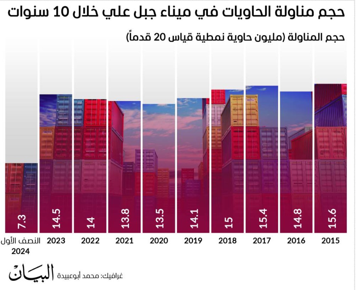 وأدت الاضطرابات في البحر الأحمر إلى زيادة حجم المناولة في جبل علي، الذي يمتاز بإمكاناته الاستيعابية الكبيرة وقدرته على التكيف، حيث أطلق بدائل برية جذابة للتغلب على التحديات، وإلى جانب دور الميناء في استيراد السلع لدبي وتسهيل الصادرات، يمثل جزءاً حيوياً من خطة التطوير المستقبلي لقطاع التصنيع، مدعوماً بالمنطقة الحرة المجاورة التي شهدت نمواً ملحوظاً في معدلات الإشغال.