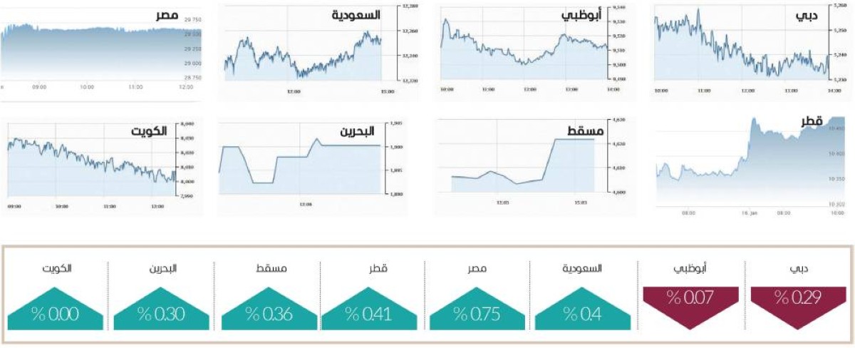 وعلى مستوى البورصات العربية، ارتفع قطر 0.41%، ومسقط 0.36%، والبحرين 0.30%، في حين استقر مؤشر الكويت 0.00%.