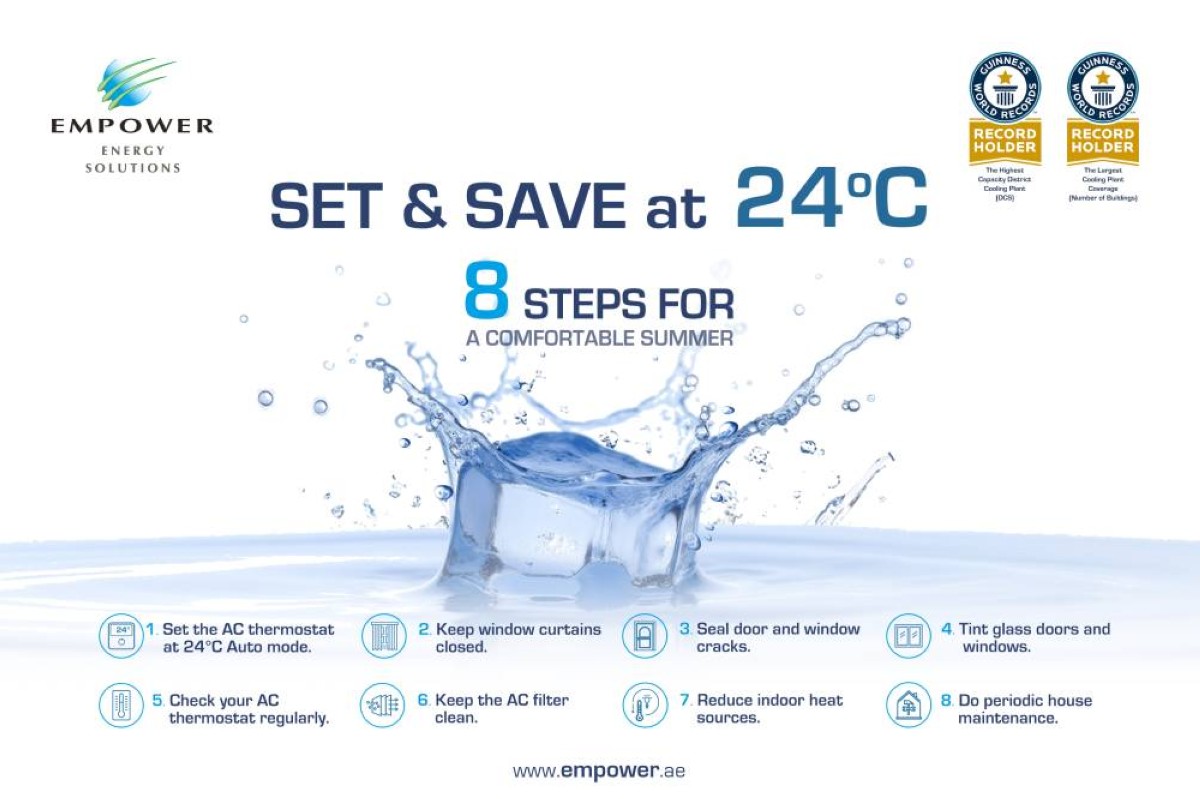 في إطار جهودها لتعزيز الوعي حول الاستهلاك المستدام للطاقة، حثت مؤسسة الإمارات لأنظمة التبريد المركزي "إمباور"، أكبر مزود لخدمات تبريد المناطق في العالم، متعامليها على اتباع سلوكيات الترشيد للحد من استهلاك طاقة التبريد وخفض الفواتير الناجمة عنها خلال فصل الصيف. وتستمر الحملة الصيفية التي أطلقتها «إمباور» في شهر يونيو تحت شعار «اضبط ووفر على 24 درجة مئوية» لمدة ثلاثة أشهر، تسلط من خلالها الضوء على سبل تعزيز كفاءة استهلاك الطاقة، تماشياً مع أهداف التنمية المستدامة.