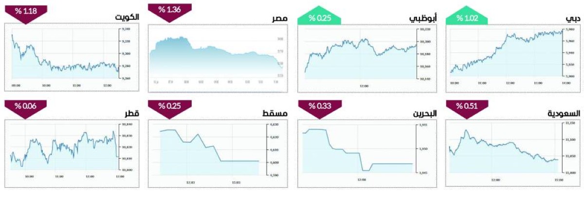 وعلى مستوى البورصات العربية، تراجع «تاسي» السعودي 0.51%، والكويتي 1.18%، والقطري 0.06%، ومسقط 0.25%، والبحرين 0.33%، وخارج منطقة الخليج، هبط مؤشر بورصة مصر 1.36%.