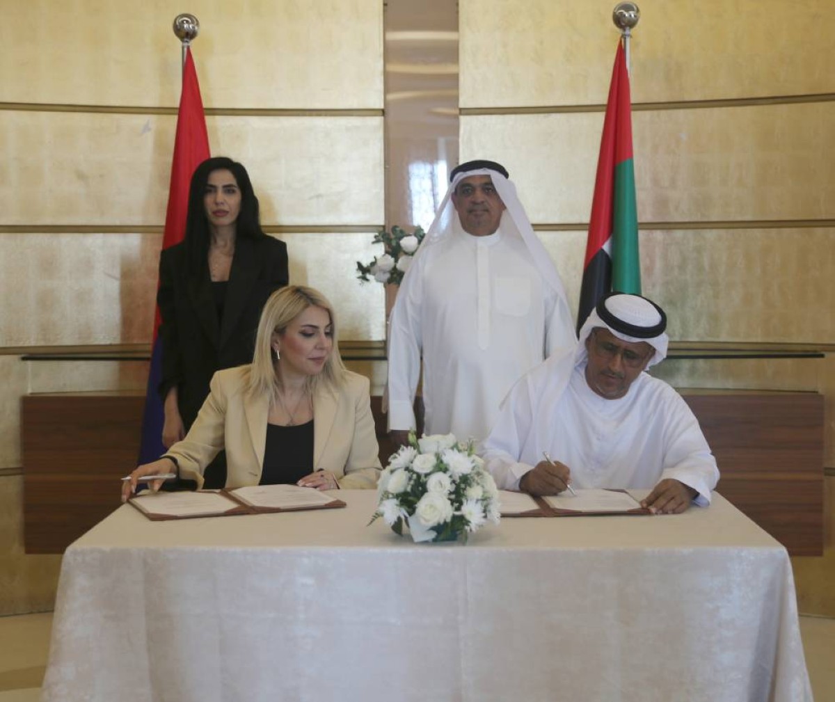 جاء ذلك خلال لقائهما بمقر الغرفة لتوقيع اتفاقية شراكة مع مركز رأس الخيمة للمعارض، وقعها الدكتور أحمد الشميلي، مدير عام غرفة التجارة بالوكالة، وعن صندوق الصناعات الأرمينية آني مانوكيان، وناقش الجانبان الإماراتي والأرميني خلال اللقاء دعم التعاون المشترك في العديد من المجالات، ومن أبرزها إطلاق قمة 2025 لمعرض «صنع بأرمينيا»، والذي يعقد 20 - 22 فبراير بمركز الحمرا للمعارض في رأس الخيمة التابع لمركز «إكسبو»، بمشاركة أكثر من 50 شركة أرمينية تعمل في العديد من القطاعات، حيث تقدم منتجاتها وخدماتها وحلولها المبتكرة للجمهور والمستثمرين ورجال الأعمال، بالإضافة إلى 10 من أفضل العلامات التجارية الأرمينية العالمية.