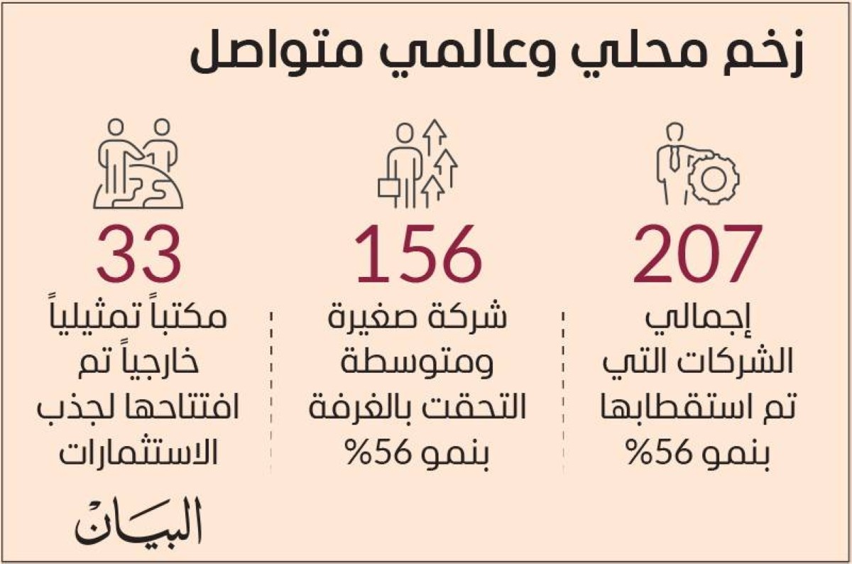 ونجحت غرفة دبي العالمية خلال العام 2024 باستقطاب 207 شركات متنوعة ما بين متعددة الجنسية وصغيرة ومتوسطة مقارنة بـ 133 شركة تم استقطابها خلال 2023، بنمو وقدره 56% في عدد الشركات التي تم جذبها إلى دبي من قبل الغرفة.
