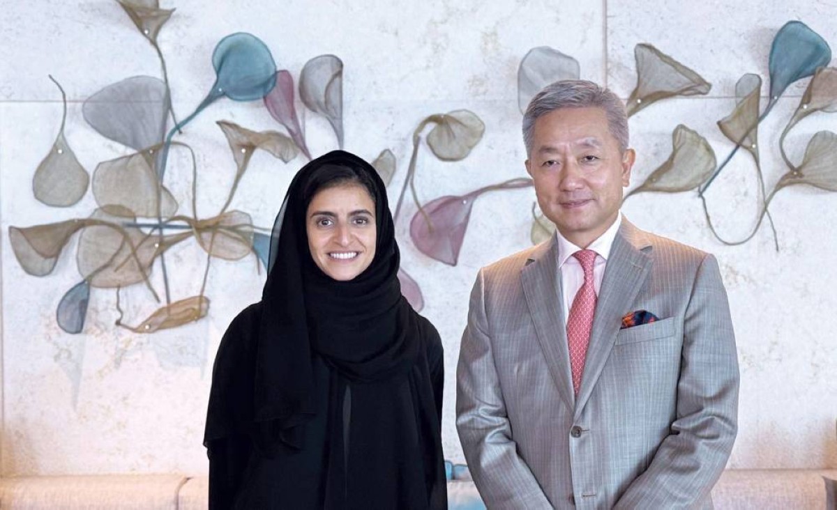 شيخة النويس خلال اللقاء مع تشانغ ييمينغ