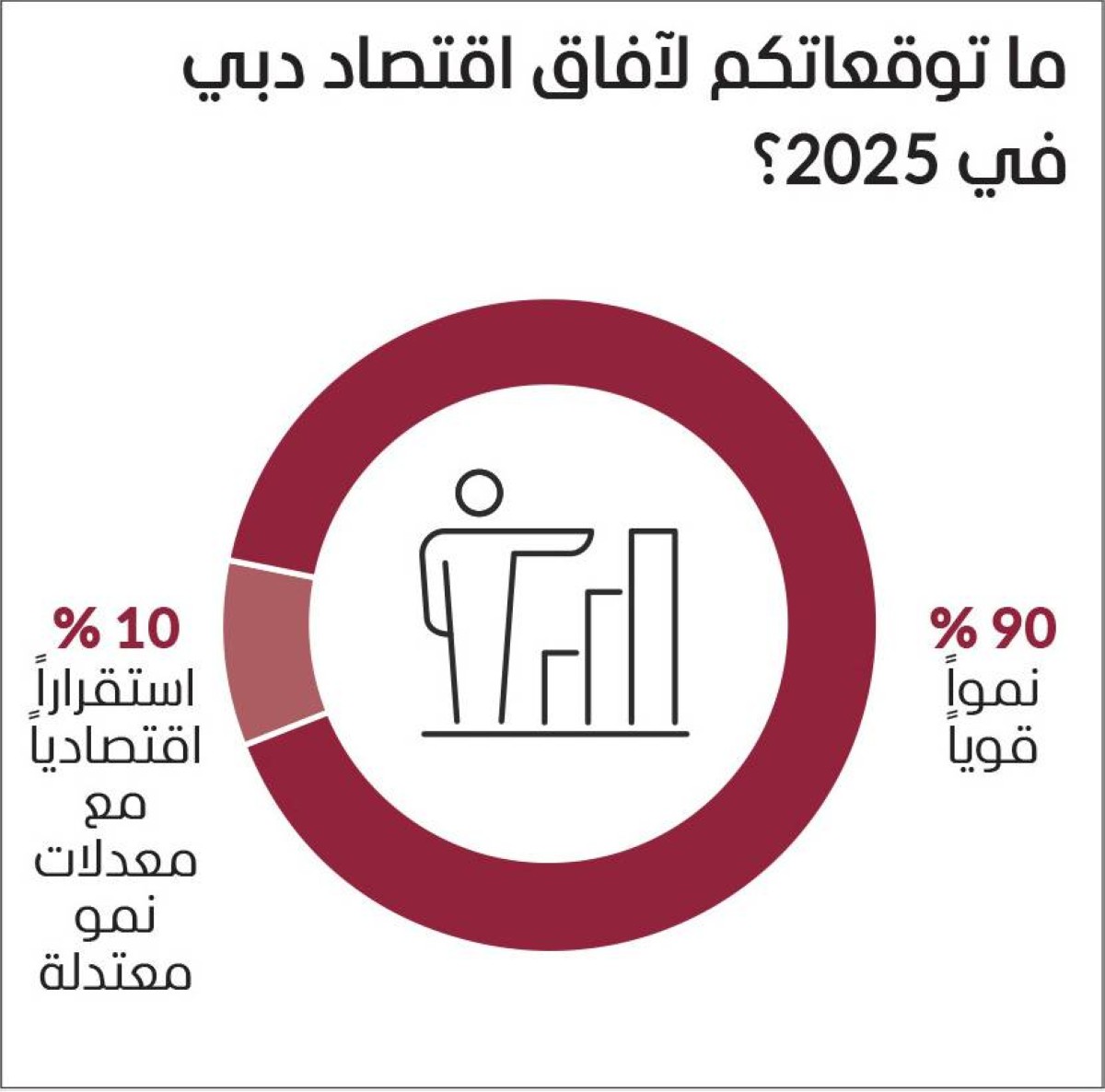 وتوقع 90 % من المشاركين في الاستبيان أن اقتصاد دبي يتجه إلى تحقيق نمو قوي خلال عام 2025، مما يشير إلى مدى ثقة العالية المؤسسات المالية العالمية باقتصاد الإمارة، فيما توقع 10 % من العينة المشاركة أن تسجل الإمارة استقراراً اقتصادياً مع معدلات نمو معتدلة.