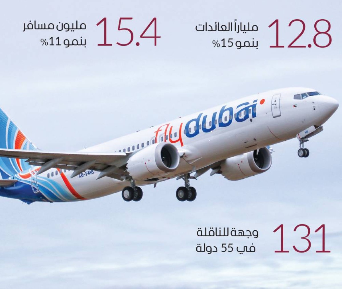 ونمت شبكة وجهات «فلاي دبي» العام الماضي إلى 131 وجهة في 55 دولة، منها 97 وجهة لم تكن مخدومة من قبل برحلات جويـة مباشرة إلى دبي أو الإمارات.