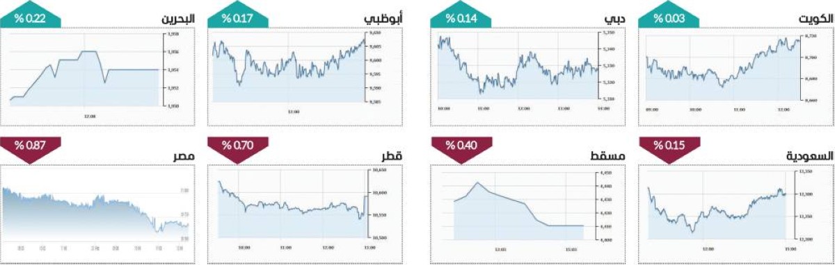 وعلى مستوى البورصات العربية، شهدت أسواق الأسهم العربية تبايناً في الأداء في ختام تعاملات اليوم الثلاثاء، وانخفض «تاسي» السعودي 0.15%، وقطر 0.70%، ومسقط 0.40%، فيما ارتفعت بورصة الكويت 0.03% والبحرين 0.22%، وخارج منطقة الخليج، تراجع مؤشر بورصة مصر 0.87%.