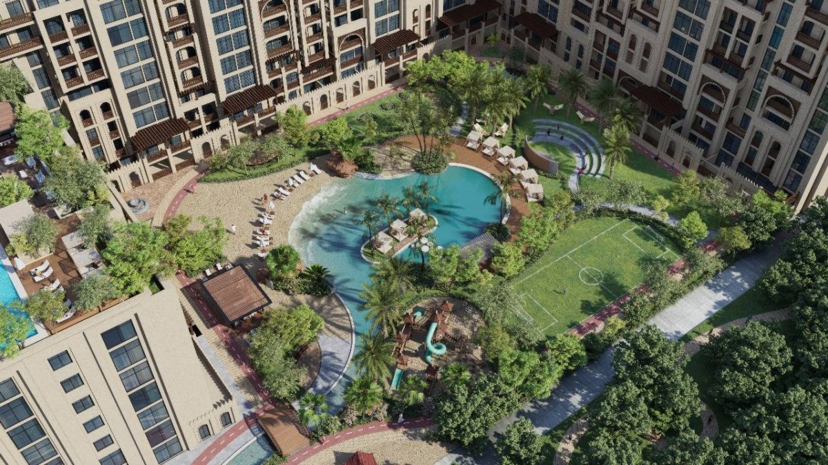 ويضم المشروع حمامات سباحة داخلية وخارجية، بما في ذلك أحواض سباحة بتصميم يشبه الشواطئ الرملية، بالإضافة إلى مسابح مغطاة للاستمتاع بجو مثالي في كافة الفصول.