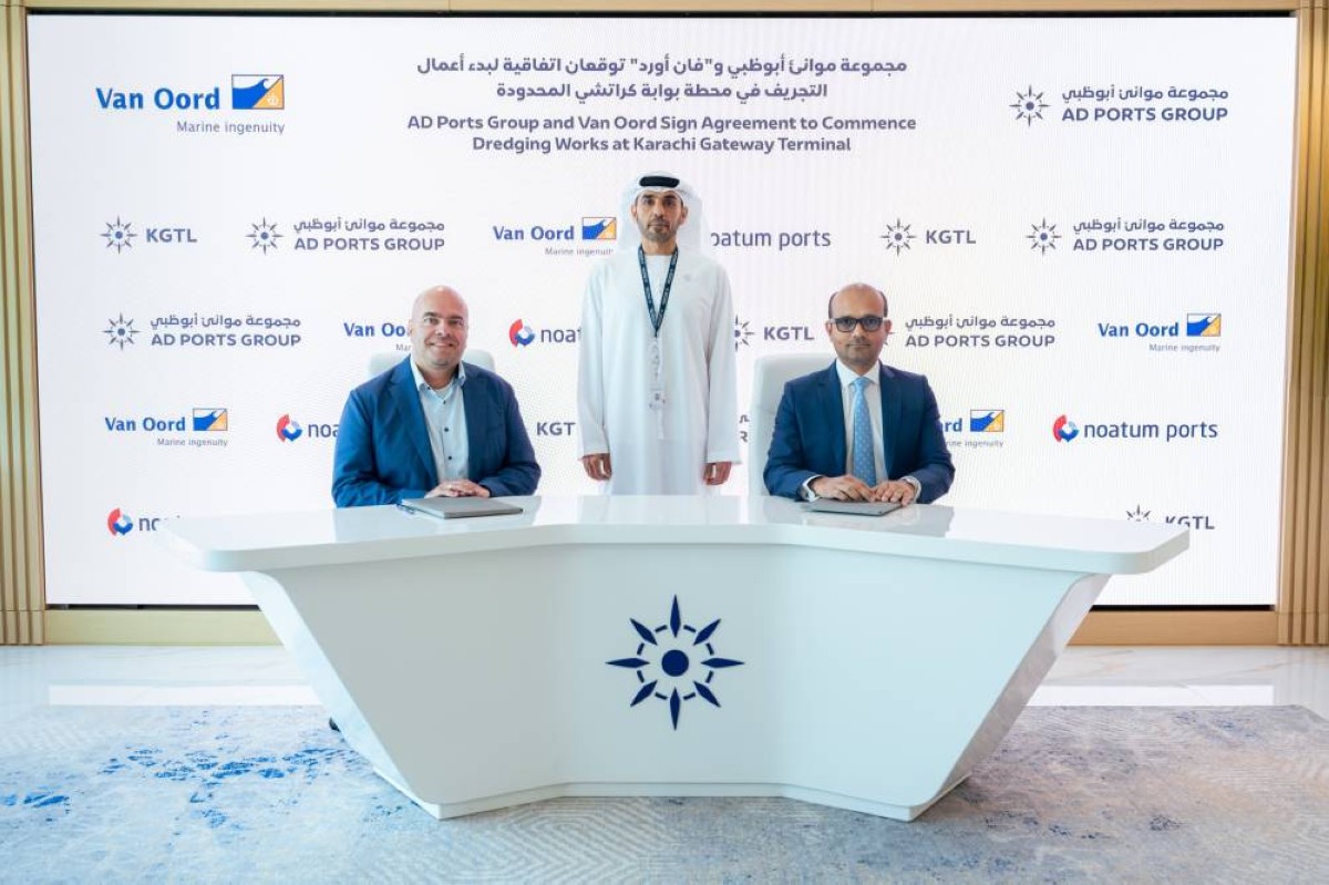 وقّعت مجموعة موانئ أبوظبي، عبر مشروعها المشترك «محطة بوابة كراتشي»، اتفاقية تجريف مع «فان أورد»، الهولندية المتخصصة في أعمال التجريف والإنشاءات البحرية، بهدف تعزيز حركة التجارة عبر محطات المجموعة في باكستان.
