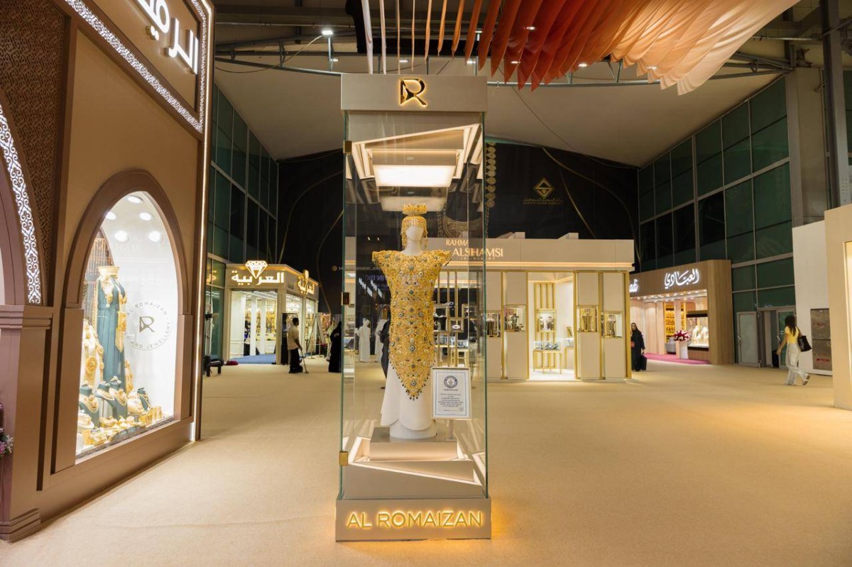 وشهد المعرض الكشف عن قطع فريدة واستثنائية من الذهب والمجوهرات والألماس، من أبرزها «حلة دبي»، التي قدمها «الرميزان للذهب والمجوهرات»، وحصدت شهادة موسوعة غينيس للأرقام القياسية كأثقل فستان في العالم مصنوع من الذهب الخالص عيار 21 قيراطاً، وتزن 10.08 كيلوغرامات، وتقدر قيمتها بـ4.6 ملايين درهم، وتتكون من أربع قطع رئيسية تشمل تاجاً ذهبياً بوزن 398 غراماً، وعقداً يزن 8810.60 غرامات، وأقراطاً بوزن 134.1 غراماً، إضافة إلى قطعة الهيار التي تزن 738.5 غراماً.