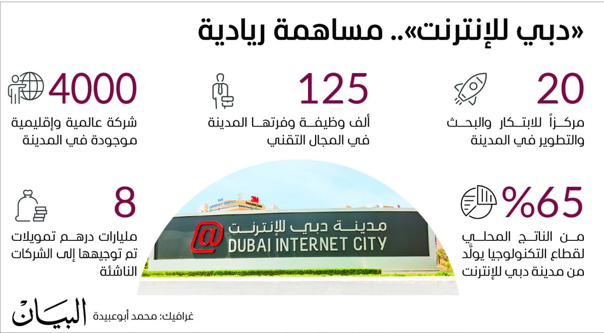 وأردف قائلاً: «لطالما أدت مدينة دبي للإنترنت، الوجهة الرائدة في المنطقة لأبرز شركات التكنولوجيا العالمية والإقليمية، دوراً أساسياً في هذا النمو؛ حيث تشير نتائج تقرير أثر مدينة دبي للإنترنت إلى إسهامها في توفير أكثر من 125 ألف وظيفة مباشرة وغير مباشرة، وتوليد 65 % من الناتج المحلي الإجمالي لقطاع التكنولوجيا في دبي. ويعكس هذا النمو المستدام الجهود المشتركة التي يبذلها مجتمعنا لمواصلة استقطاب ألمع المواهب وتعزيز الابتكار وتوفير بيئة داعمة للتطور التكنولوجي الذي يسهم في نمو دبي ودولة الإمارات وتقدمهما».