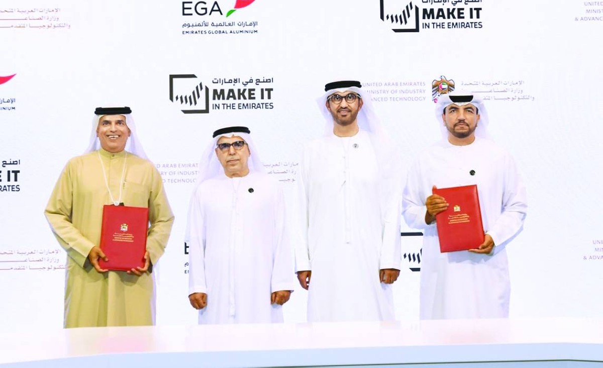 ووقّع الاتفاقية كل من عمر صوينع السويدي، وكيل وزارة الصناعة والتكنولوجيا المتقدمة، وعبد الناصر بن كلبان، الرئيس التنفيذي لشركة الإمارات العالمية للألمنيوم، بحضور معالي الدكتور سلطان الجابر، وزير الصناعة والتكنولوجيا المتقدمة، وعبد الله كلبان، العضو المنتدب لشركة الإمارات العالمية للألمنيوم، خلال فعاليات منتدى «اصنع في الإمارات».