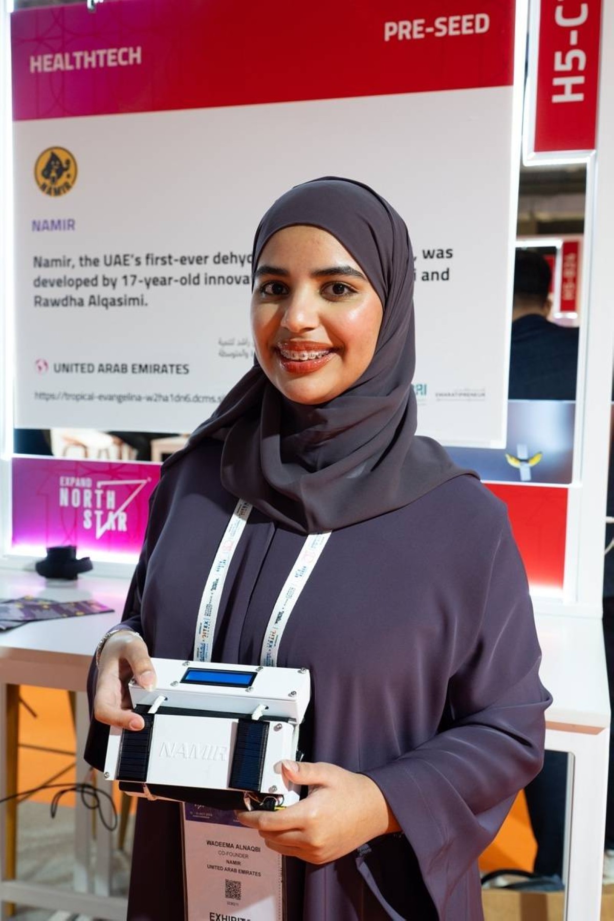 من جهتها، قالت وديمة النقبي، المؤسس المشارك لشركة «نمير»: «فكرة «نمير» هي عبارة عن سوار معصم فريد من نوعه يعمل بالطاقة الشمسية لرصد حالات الجفاف في جسم الإنسان ومساعدة عمال البناء على حماية صحتهم في أوقات الحر الشديد. ويقدم المعرض لنا فرصة حيوية للتواصل مع كبرى المؤسسات والهيئات الحكومية التي يمكننا العمل معها لنشر هذه التقنية، حيث نطمح لاستكشاف الآراء حول منتجنا والتواصل مع المستثمرين المحتملين لتطوير فكرتنا وتحقيق هدفنا في تعزيز رفاهية العمال وضمان صحتهم وسلامتهم أثناء العمل».