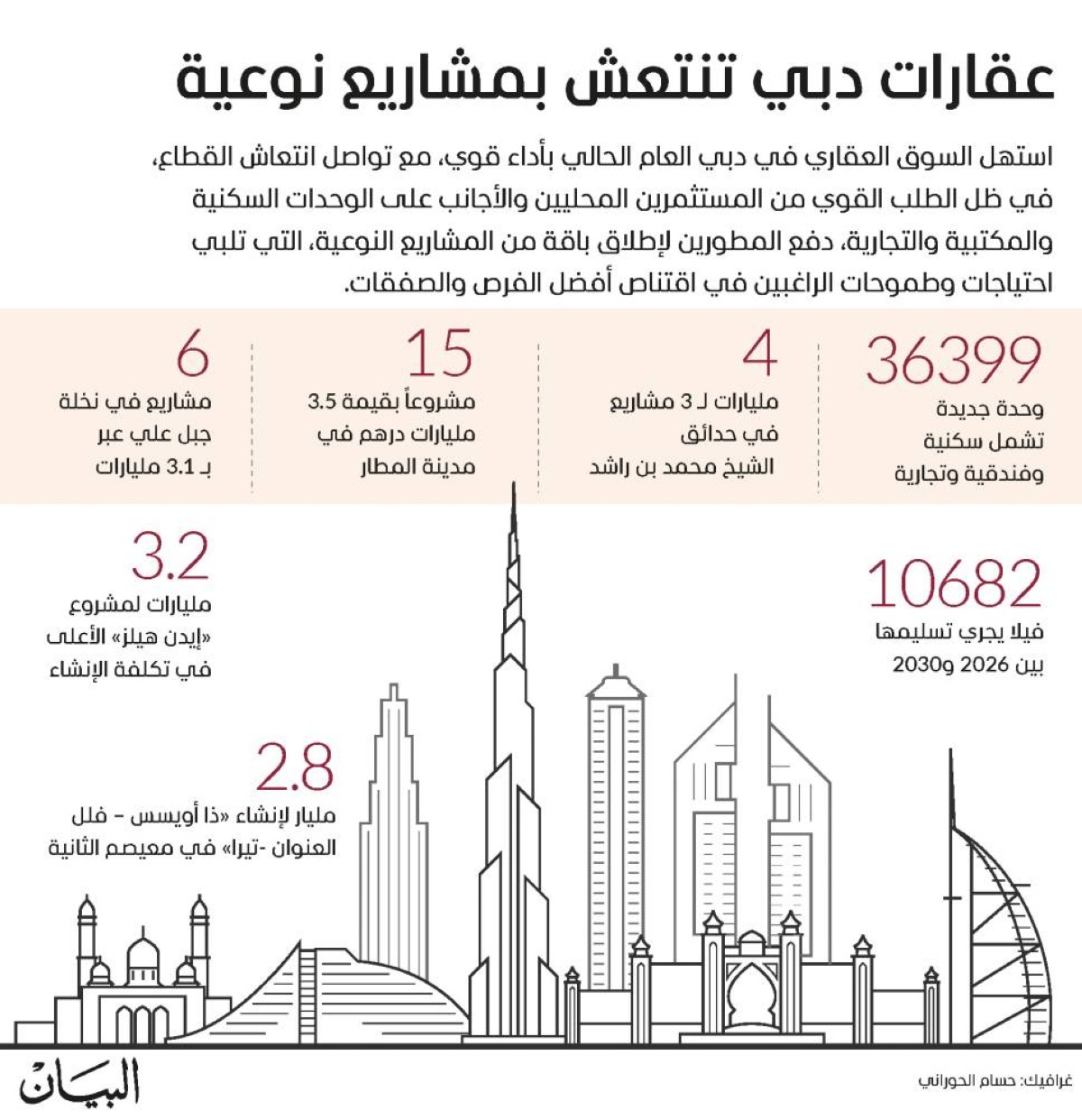 ويعكس هذا الزخم ثقة المستثمرين المتزايدة في سوق دبي العقاري، المدعومة بعوامل متعددة، أبرزها الانتعاش الاقتصادي القوي، وجودة المشاريع، وتنوع خيارات الاستثمار والبيئة الضريبية الجذابة والبنية التحتية المتطورة والسياسات الحكومية المحفزة للاستثمار، بما في ذلك برامج التأشيرات الذهبية والتسهيلات التشريعية.