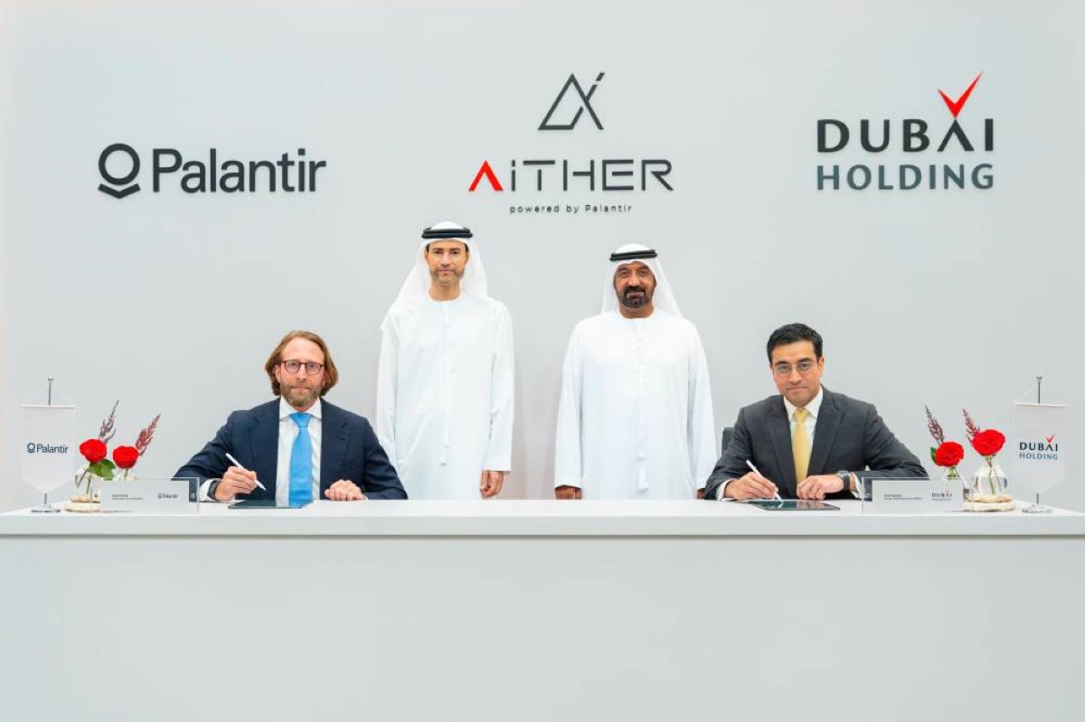 وبحضور سموّ الشيخ أحمد بن سعيد آل مكتوم، رئيس دبي القابضة، ومعالي محمد بن هادي الحسيني، وزير دولة للشؤون المالية، جرت مراسم توقيع الاتفاقية في إمارة دبي بين كلٌّ من أميت كوشال، الرئيس التنفيذي للمجموعة في دبي القابضة، ونوم بيرسكي، نائب الرئيس التنفيذي لشركة "بالانتير ".