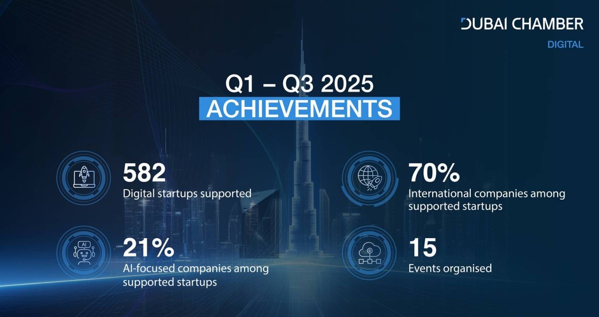 أعلنت غرفة دبي للاقتصاد الرقمي، إحدى الغرف الثلاث العاملة تحت مظلة غرف دبي، عن دعمها ومساهمتها في تأسيس وتوسيع أعمال 582 شركة رقمية ناشئة خلال الأشهر التسعة الأولى من عام 2025، ما يعكس مساهمة الغرفة في ترسيخ مكانة دبي مركزاً رائداً عالمياً للشركات الرقمية وريادة الأعمال.