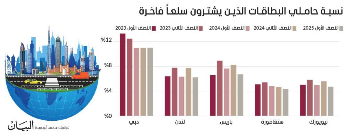 شكّلت دبي استثناء في اتجاه حاملي البطاقات الذين يشترون السلع الفاخرة، متفوقة على مدن مثل لندن، وباريس، ونيويورك، وسنغافورة، بحسب أحدث تقارير «الرؤى الاقتصادية العالمية»، الصادر عن «فيزا» Visa، العالمية.
