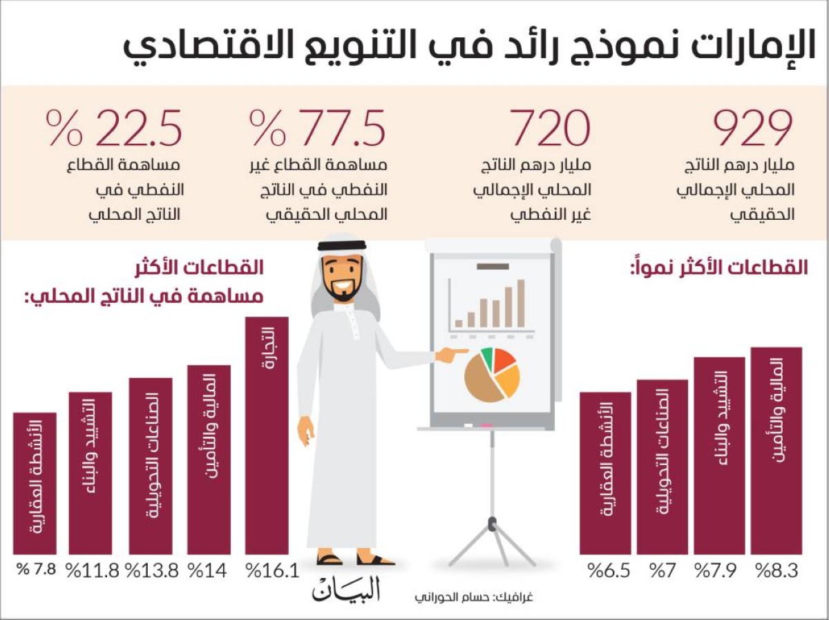 من جهتها، أكدت حنان منصور أهلي، مدير المركز الاتحادي للتنافسية والإحصاء أن نتائج الأداء القوي للناتج المحلي الإجمالي خلال النصف الأول من عام 2025، والبالغ 929 مليار درهم، تعكس متانة الاقتصاد الوطني لدولة الإمارات، واستمرارية زخم النمو الذي تقوده الأنشطة غير النفطية مثل التجارة والصناعات التحويلية التشييد والبناء. وقالت إن «ارتفاع مساهمة القطاعات غير النفطية إلى 77.5% يؤكد نجاح سياسات التنويع الاقتصادي التي تنتهجها الدولة، وقدرتها على خلق بيئة إنتاجية مرنة ومستدامة ترتكز على المعرفة والابتكار، وتواكب توجهات الدولة نحو بناء اقتصاد المستقبل».