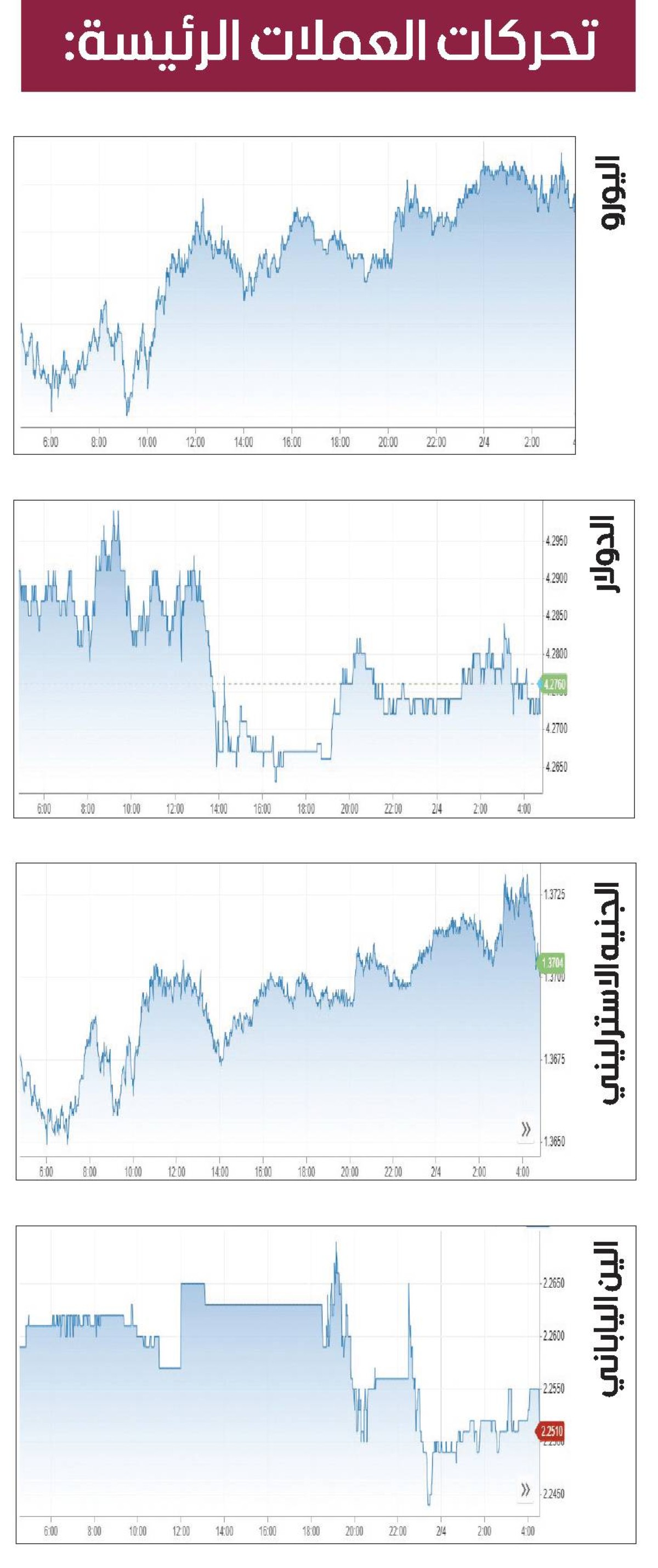وبلغ سعر الدولار الأسترالي 0.7028 دولار بعد ارتفاع حاد بلغ واحداً بالمئة في الجلسة السابقة، إذ رفع بنك الاحتياطي الأسترالي أسعار الفائدة، ما دفع الأسواق إلى المراهنة على الحاجة إلى مزيد من الارتفاعات هذا العام. وانخفض سعر الدولار النيوزيلندي قليلاً إلى 0.604 دولار.