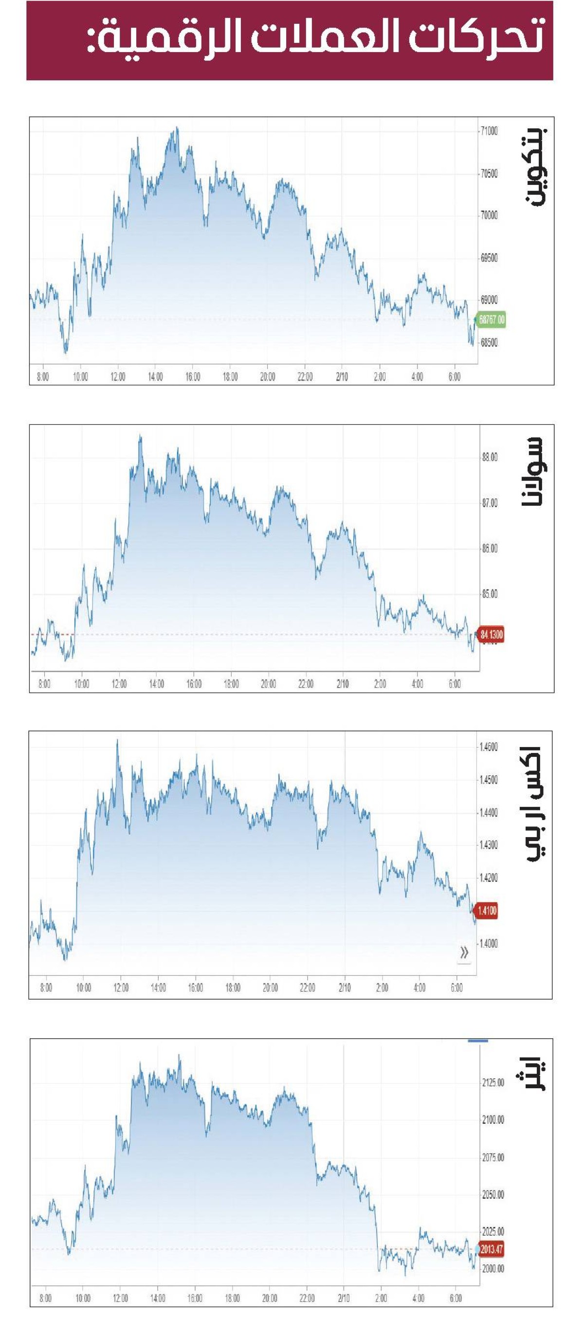واصلت أسعار العملات المشفرة تراجعها، خلال تعاملات أمس، في ظل موجة البيع الحادة التي تشهدها السوق، والتي تدفع إيثريوم نحو مستوى ألفي دولار.