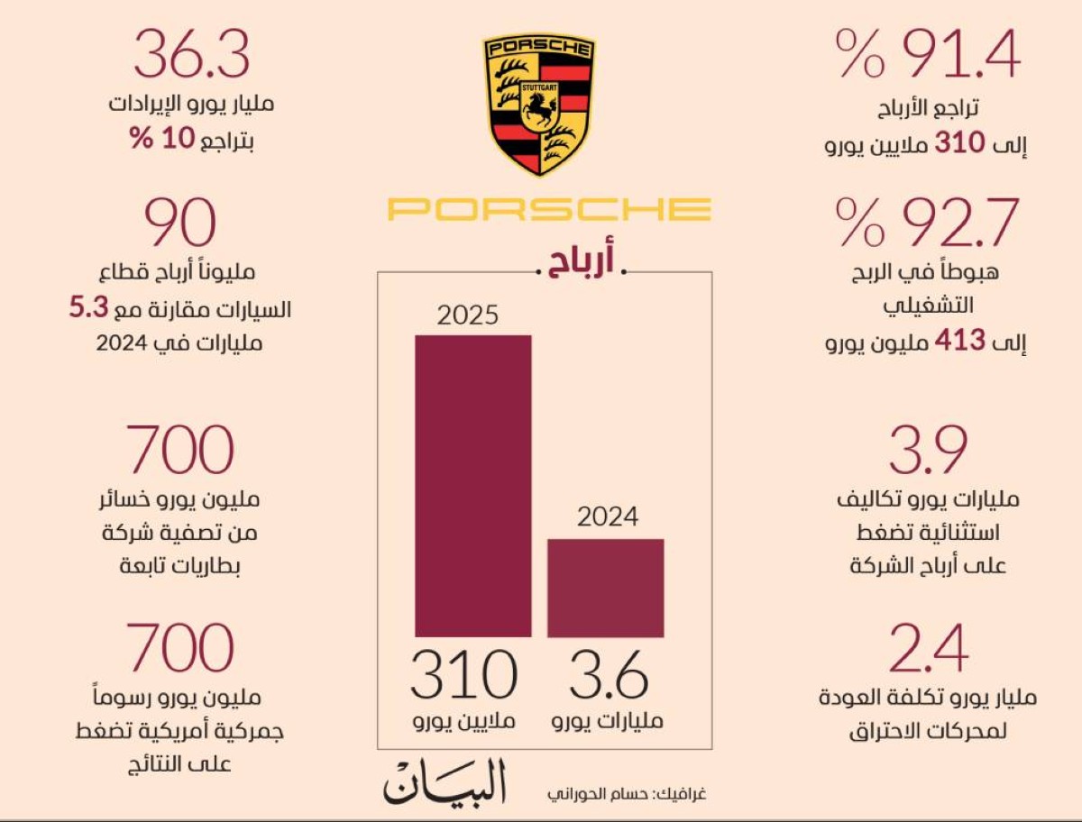 استنزاف أرباح »بورشه « في 2025 بشكل شبه كامل