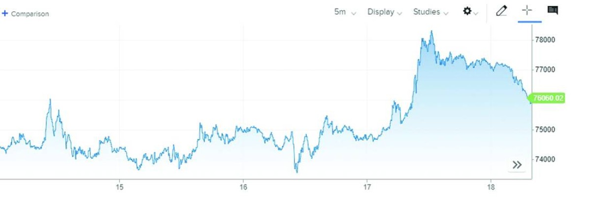 وارتفعت «بتكوين»، العملة الأكبر من حيث القيمة السوقية، هذا الأسبوع بنسبة 5.8 % تقريباً، وفق حسابات «البيان»، صعوداً من 72867 دولاراً تقريباً الأسبوع الماضي إلى 77115 دولاراً هذا الأسبوع.