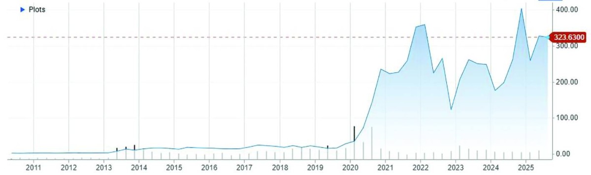 وسجل سهم الشركة أعلى إغلاق له 488.54 دولاراً في منتصف ديسمبر من العام الماضي، بينما أعلى إغلاق نهائي للسهم كان 479.86 دولاراً، واستقر سعره يوم الجمعة الماضي عند 323.6 دولاراً.