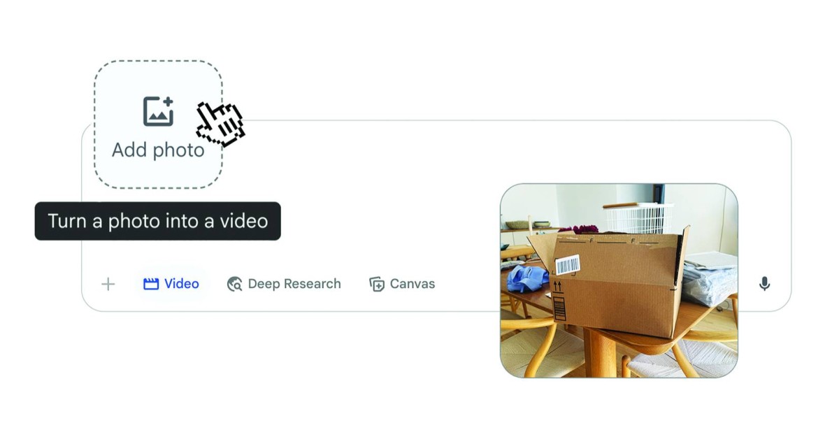 ولتحويل الصور إلى فيديوهات، حدّد «مقاطع الفيديو» من قائمة الأدوات في خانة الطلبات على Gemini وحمّل صورة. ثم، صف المشهد وأي تعليمات صوتية، وشاهد كيف تتحول صورتك الثابتة إلى فيديو ديناميكي. يمكن للمستخدمين الإبداع في تحريك الأشياء اليومية، أو إضفاء الحياة على رسوماتهم ولوحاتهم، أو إضافة حركة إلى مشاهد الطبيعة. بمجرد اكتمال الفيديو، يمكن للمستخدمين النقر على زر المشاركة أو تنزيله لمشاركته مع الأصدقاء والعائلة.