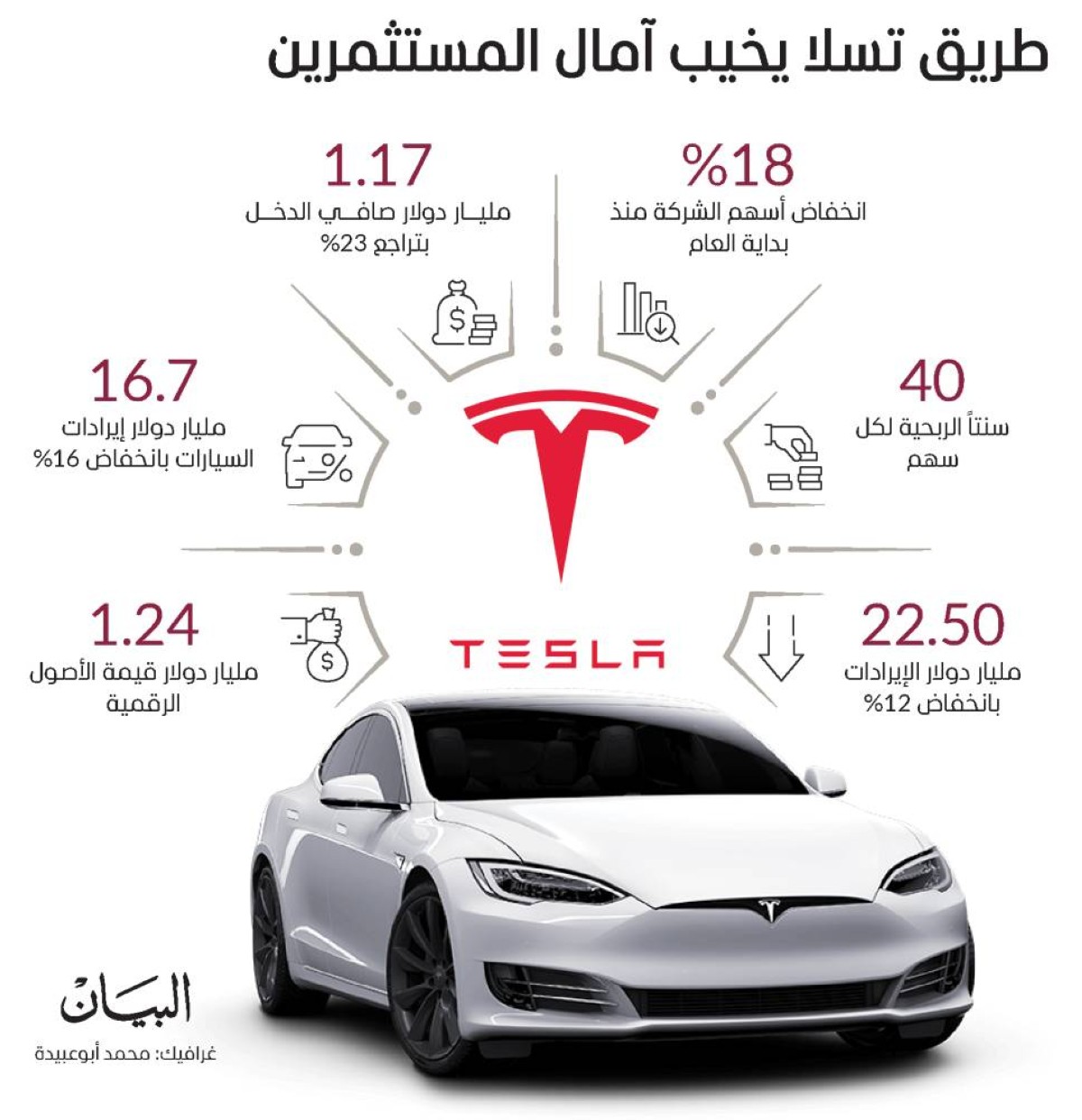 وأعلنت «تسلا» عن انخفاض بنسبة 16% في إيرادات السيارات، مع انخفاض المبيعات للربع الثاني على التوالي، لتصل إلى مستوى أقل من تقديرات المحللين مجدداً.