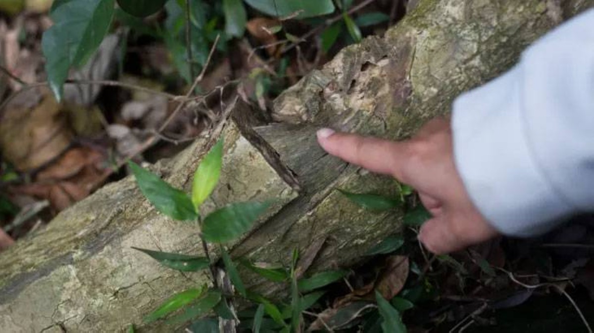 على بعد خطوات قليلة من مختبره، يشير عالم الوراثة تشانغ هوارونغ إلى جذع شجرة قطعها حطّابون غير قانونيين، على قوله، بحثا عن صمغها العطري الثمين المعروف بالعود.