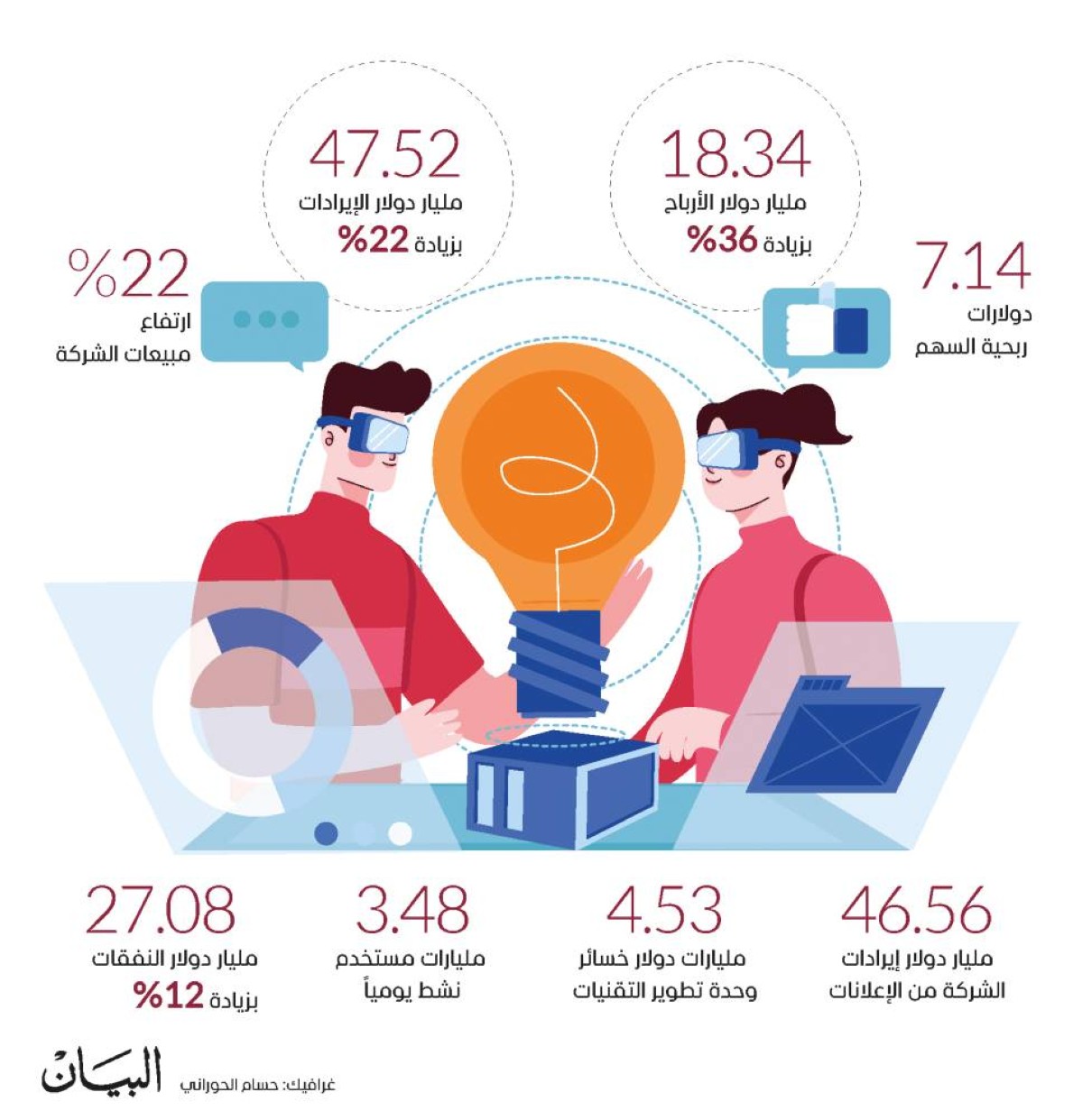 وبلغ صافي ربحها 18.34 مليار دولار، أي بزيادة 36%. ويعود ذلك خصوصاً إلى ارتفاع أسعار الإعلانات والقيمة المضافة التي يوفرها الذكاء الاصطناعي في تحويل الإعلانات إلى مشتريات.