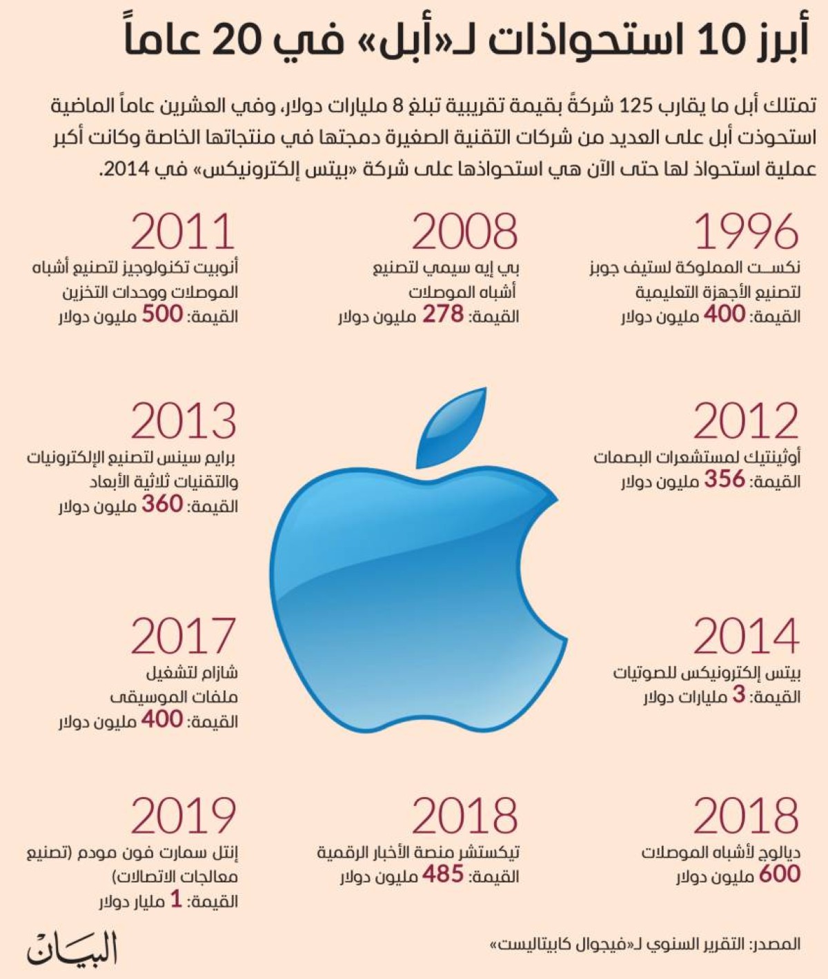 أبرز 10 استحواذات لـ«أبل» في 20 عاماً