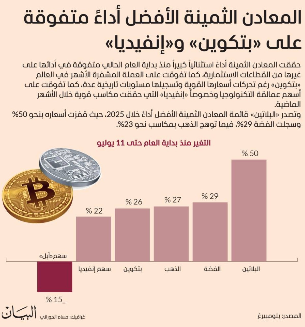 المعادن الثمينة الأفضل أداءً متفوقة على «بتكوين» و«إنفيديا»