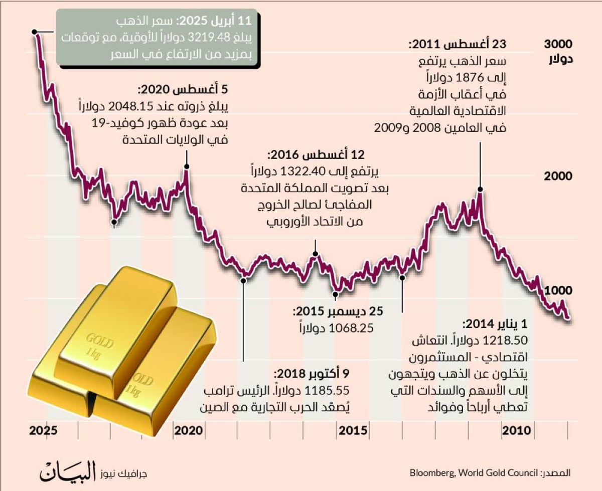 تشهد أسعار الذهب في عام 2025 قفزات غير مسبوقة، حيث اقتربت الأونصة من مستويات تاريخية تجاوزت 3.238 دولاراً، حيث يُعد الذهب ملاذاً آمناً تقليدياً يلجأ إليه المستثمرون في أوقات عدم اليقين.