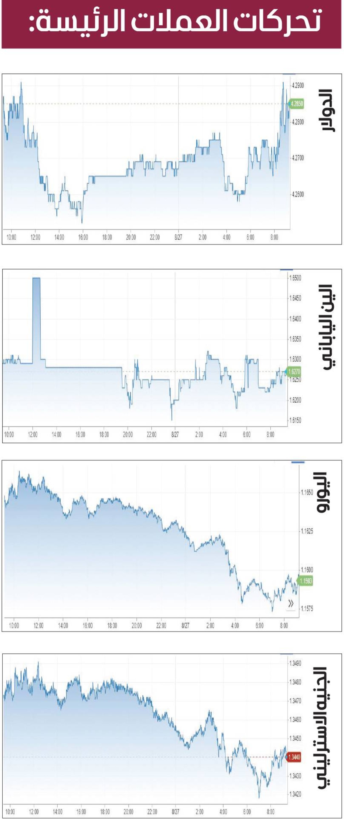 وبالنسبة للعملات الأخرى، انخفض الدولار الأسترالي في أحدث التعاملات 0.16% إلى 0.6484 دولار أمريكي، في حين تراجع الدولار النيوزيلندي 0.27 % إلى 0.5845 دولار أمريكي.