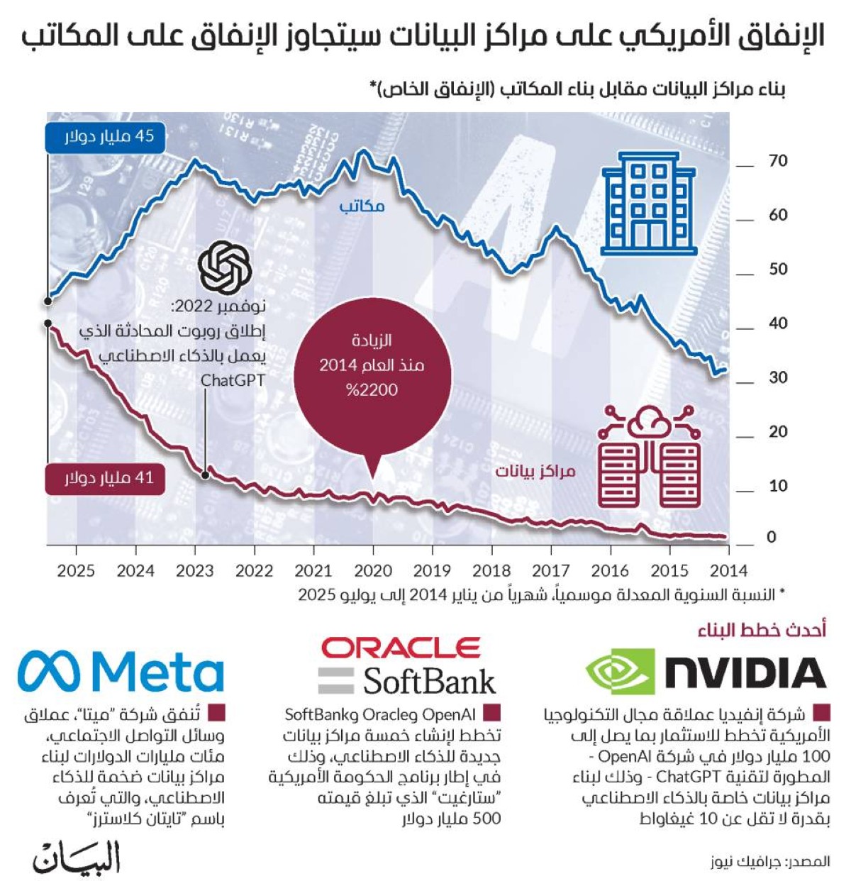 أعمالاﻹﻧﻔﺎق اﻷﻣﺮﻳﻜﻲ ﻋﻠﻰ ﻣﺮاﻛﺰ اﻟﺒﻴﺎﻧﺎت ﺳﻴﺘﺠﺎوز اﻹﻧﻔﺎق ﻋﻠﻰ اﻟﻤﻜﺎﺗﺐالبياندبي ﺑﻨﺎء ﻣﺮاﻛﺰ اﻟﺒﻴﺎﻧﺎت ﻣﻘﺎﺑﻞ ﺑﻨﺎء اﻟﻤﻜﺎﺗﺐ (اﻹﻧﻔﺎق اﻟﺨﺎص)*