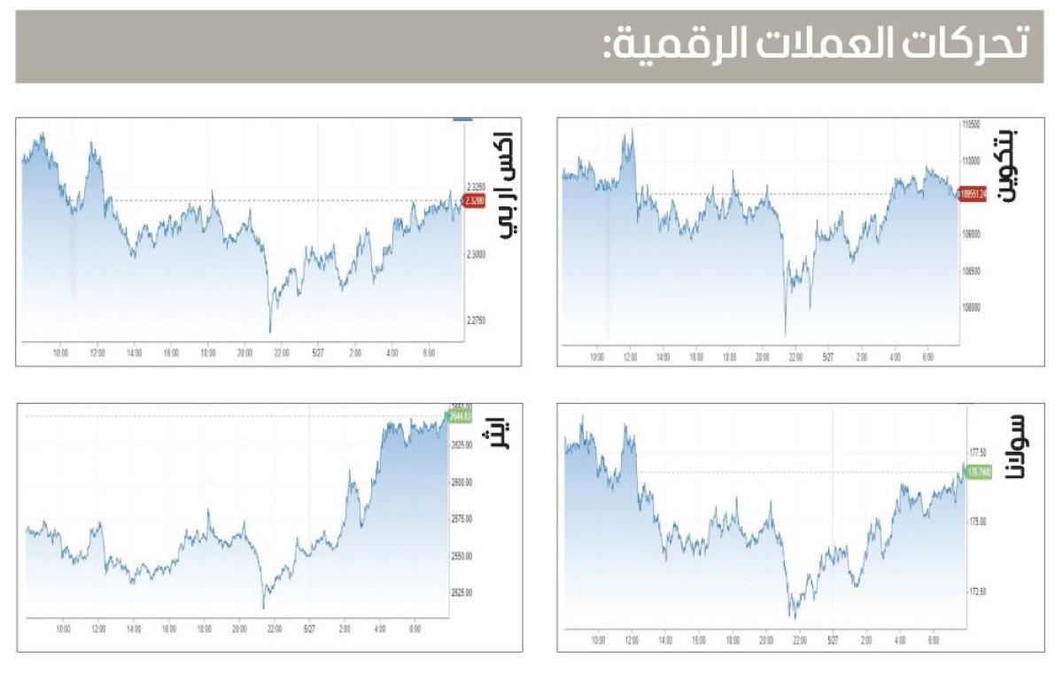 «إيثريوم» تقود ارتفاعات العملات المشفرة