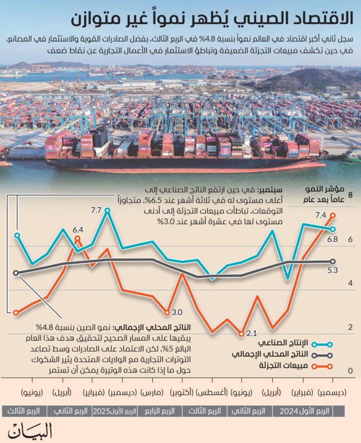 الاقتصاد الصيني يُظهر نمواً غير متوازن