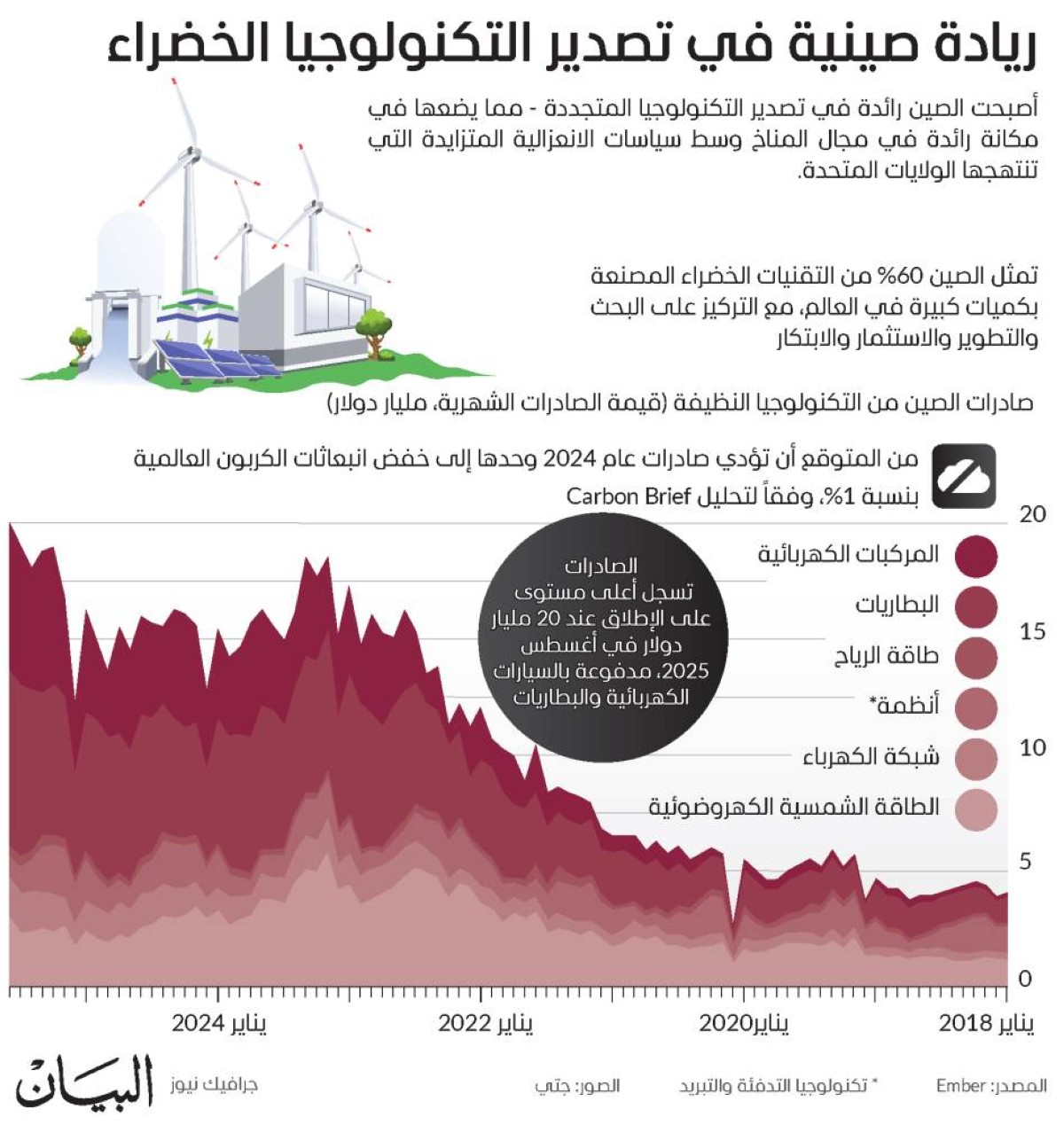 أعمالرﻳﺎدة ﺻﻴﻨﻴﺔ ﻓﻲ ﺗﺼﺪﻳﺮ اﻟﺘﻜﻨﻮﻟﻮﺟﻴﺎ اﻟﺨﻀﺮاءالبياندبي أﺻﺒﺤﺖ اﻟﺼﻴﻦ راﺋﺪة ﻓﻲ ﺗﺼﺪﻳﺮ اﻟﺘﻜﻨﻮﻟﻮﺟﻴﺎ اﻟﻤﺘﺠﺪدة - ﻣﻤﺎ ﻳﻀﻌﻬﺎ ﻓﻲ ﻣﻜﺎﻧﺔ راﺋﺪة ﻓﻲ ﻣﺠﺎل اﻟﻤﻨﺎخ وﺳﻂ ﺳﻴﺎﺳﺎت اﻻﻧﻌﺰاﻟﻴﺔ اﻟﻤﺘﺰاﻳﺪة اﻟﺘﻲ ﺗﻨﺘﻬﺠﻬﺎ اﻟﻮﻻﻳﺎت اﻟﻤﺘﺤﺪة.