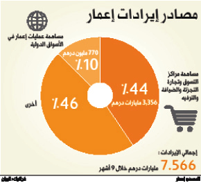 وأضافت بأن إيراداتها خلال الأشهر التسعة الأولى من العام 2013 بلغت 7.566 مليارات درهم (2.060 مليار دولار) بنمو قدره 36% مقارنة بإيرادات الفترة المقابلة من العام الماضي، والتي سجلت 5.560 مليارات درهم (1.514 مليار دولار).