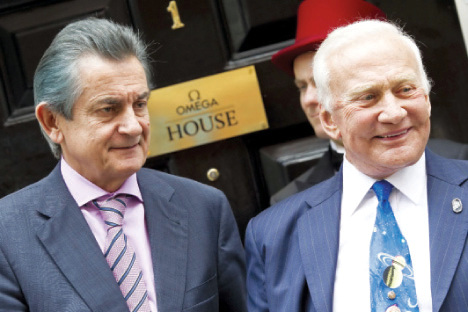 وقاد رائد الفضاء الشهير والعالم باز ألدرين أول مركبة تحط على سطح القمر وهو ثاني شخص يمشى على سطح القمر، وسفير العلامة التجارية أوميغا منذ عام 2009. وتعليقاً على ذلك قال باز الدرين «يشكل الوقت عنصراً أساسياً في حياتي على الدوام وقد كنت محظوظا بتواجدي في المكان المناسب والوقت المناسب دائماً». .