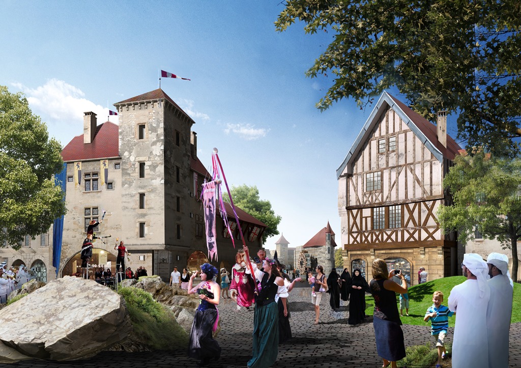 ولا بد لجميع زوار "دبي باركس آند ريزورتس" أن يمروا بدايةً بالقرية الفرنسية المصممة على طراز القرون الوسطى في مجمع "ريفرلاند دبي"؛ حيث يمكنهم الاطلاع عن كثب على أجواء عصر النهضة من خلال عروض الشوارع الجميلة، ومطاعم الهواء الطلق ، فضلاً عن الإطلالات المذهلة التي تضم مجموعة من الأبراج والدفاعية و طاحونة مياه متحركة ساحرة المنظر.