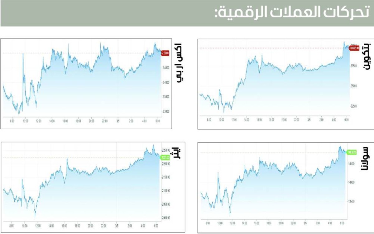 وفقدت «بيتكوين» بعض الزخم منذ ذلك الحين ولكنها تقع عند نحو 88 ألف دولار، وارتفعت العملة بنسبة 5.22% الأربعاء، واقتربت قيمتها السوقية من 1.750 تريليون دولار، بينما لا تزال هيمنتها على العملات البديلة ثابتة عند 58%. وأمس، حققت أيضاً العديد من العملات البديلة مكاسب مثيرة للإعجاب، فقد سجلت ريبل وإيثيريوم أيضاً زيادات ملحوظة بأكثر من 5%.