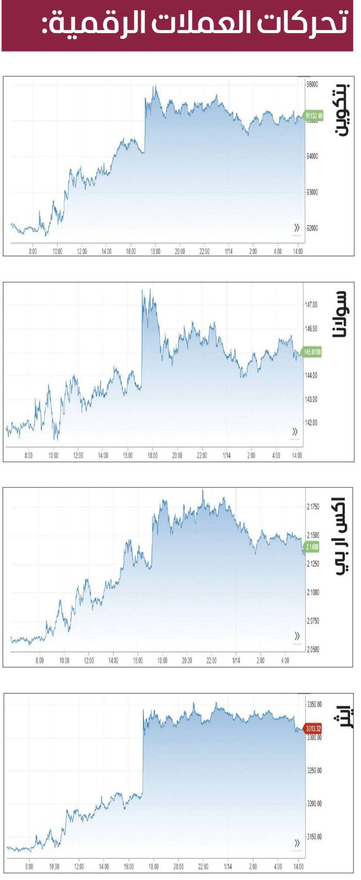 «بتكوين» فوق 95 ألف دولار