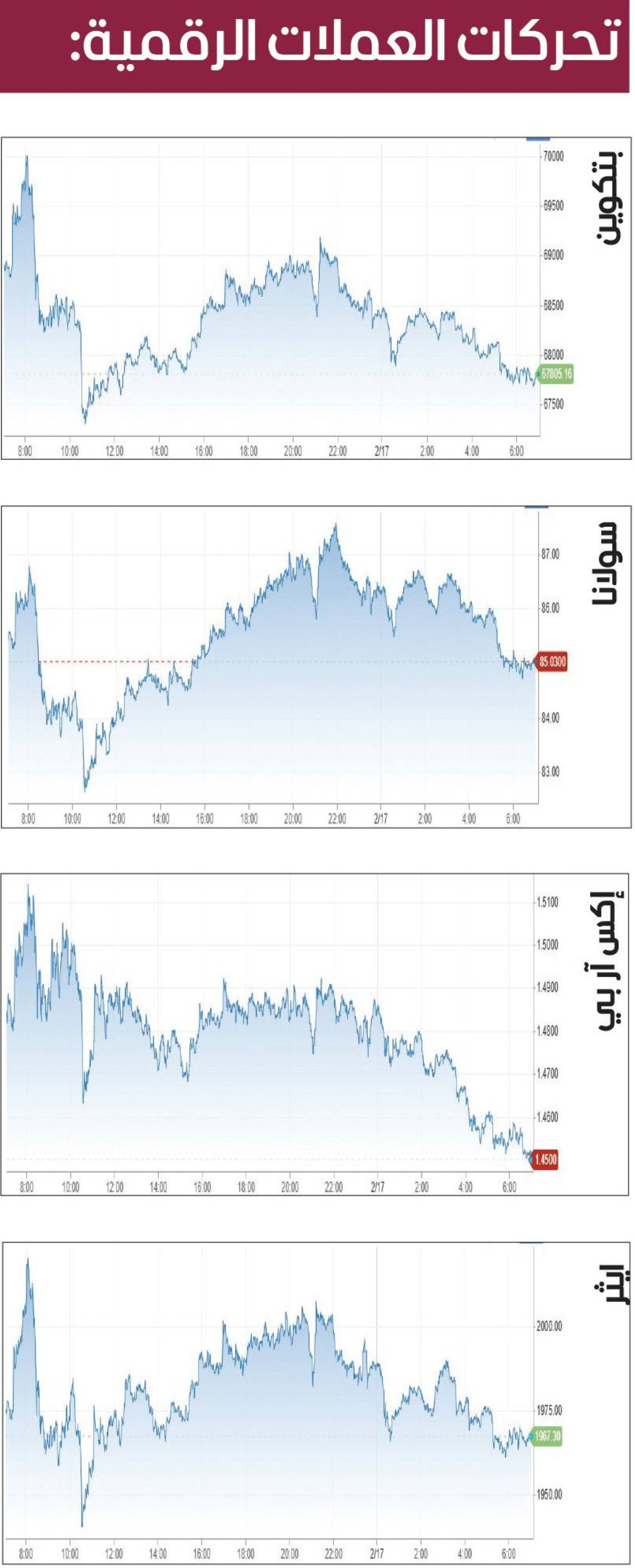 وكانت بتكوين قد بدأت الأسبوع عند مستوى 70 ألف دولار قبل أن تتراجع إلى نحو 65 ألف دولار خلال تداولات الخميس، بحسب بيانات منصة Coinbase.