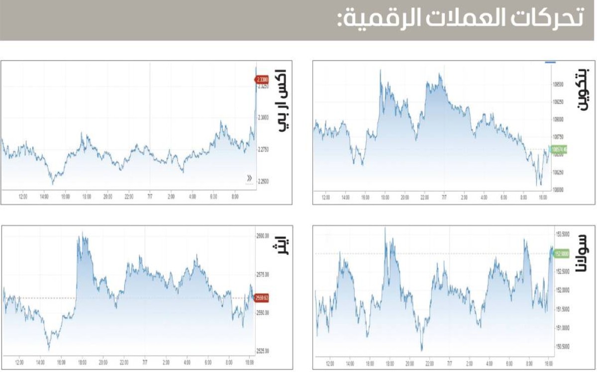شهدت أسعار العملات الرقمية ارتفاعاً جماعياً خلال تعاملات أمس، بقيادة عملة الـ«بتكوين»، التي ارتفعت فوق 108.500 دولارات.