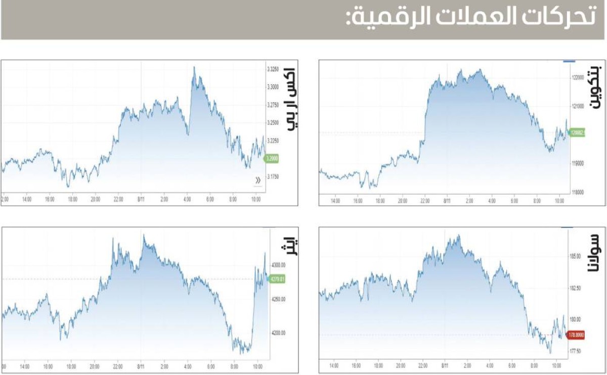 تباينت أسعار العملات المشفرة أمس، مع تراجع البتكوين أكبر العملات من حيث القيمة السوقية، والتي هبطت دون 120 ألف دولار، حيث سجلت 119.99 ألف دولار.